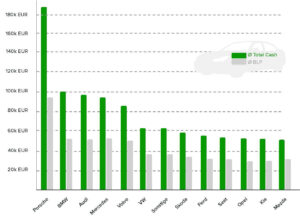 La valeur du véhicule dépend aussi du secteur. On trouve les voitures de fonction les plus chères dans les secteurs de l’industrie automobile, de la banque, de l’industrie pharmaceutique, des machines-outils, de la chimie, de l’IT, des biens de consommation et du commerce.